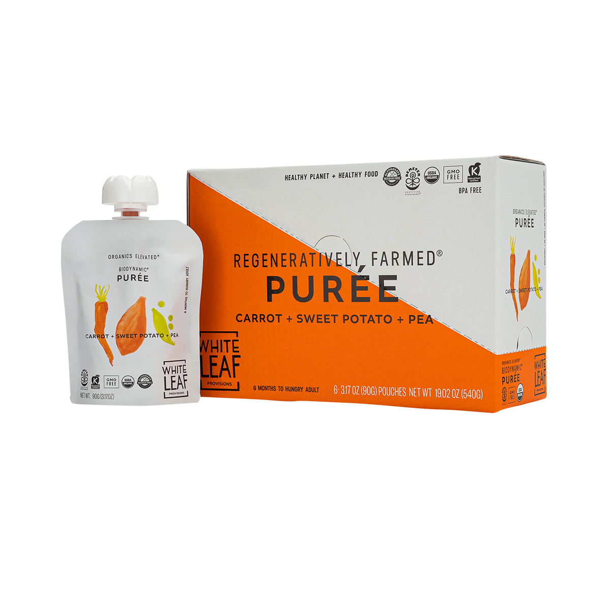 Each blend is made with regeneratively grown ingredients, farmed in nutrient-dense soil — free from GMOs, added sugars, artificial colors, flavors, and preservatives, with each batch tested. Perfect for all ages, these smooth, delicious purees capture the warmth and nourishment of the winter harvest in every pure sip and bite.